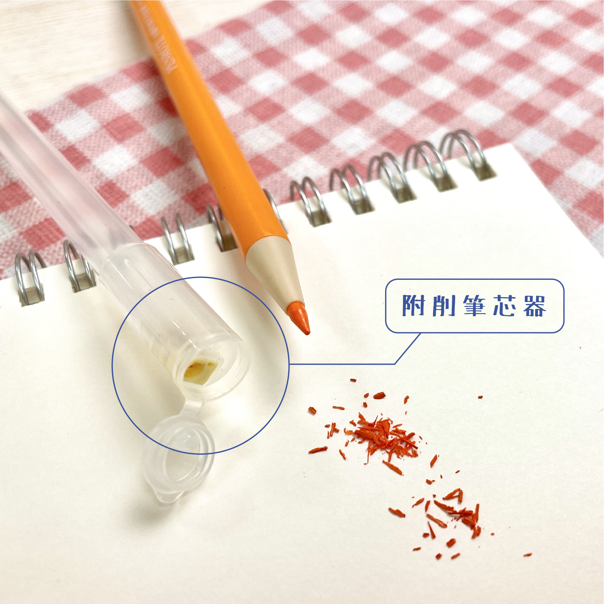 ※自動按壓出芯,內附削筆芯器,罐裝包裝方便攜帶
