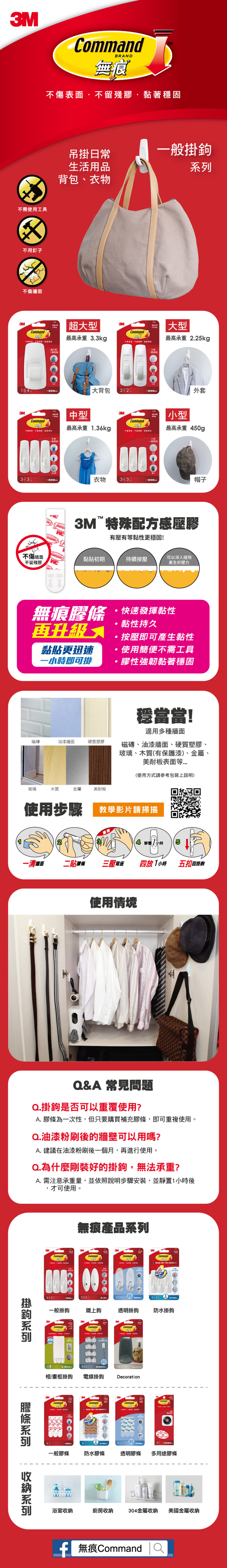 ◆採用3M獨家專利的無痕膠條,可以黏貼在廚房、房間、客廳、辦公室等多項空間的牆面上