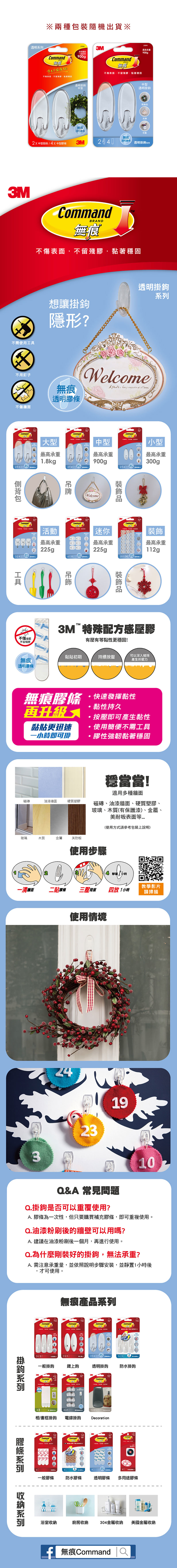 ◆內容量:2支中型掛鉤 4片中型無痕透明膠條 1片酒精片