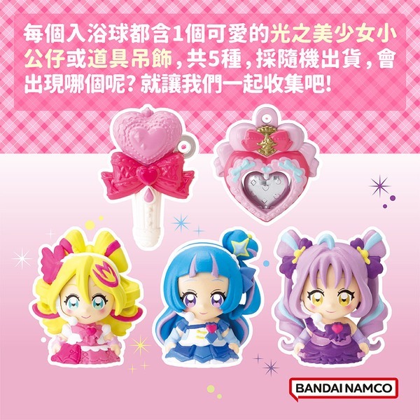 每個入浴球都含1個可愛的光之美少女小公仔或道具吊飾,