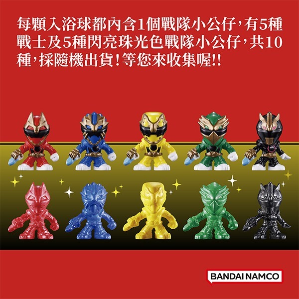 每顆入浴球都內含1個戰隊小公仔,共10種,採隨機出貨,就讓我們一起收集吧!