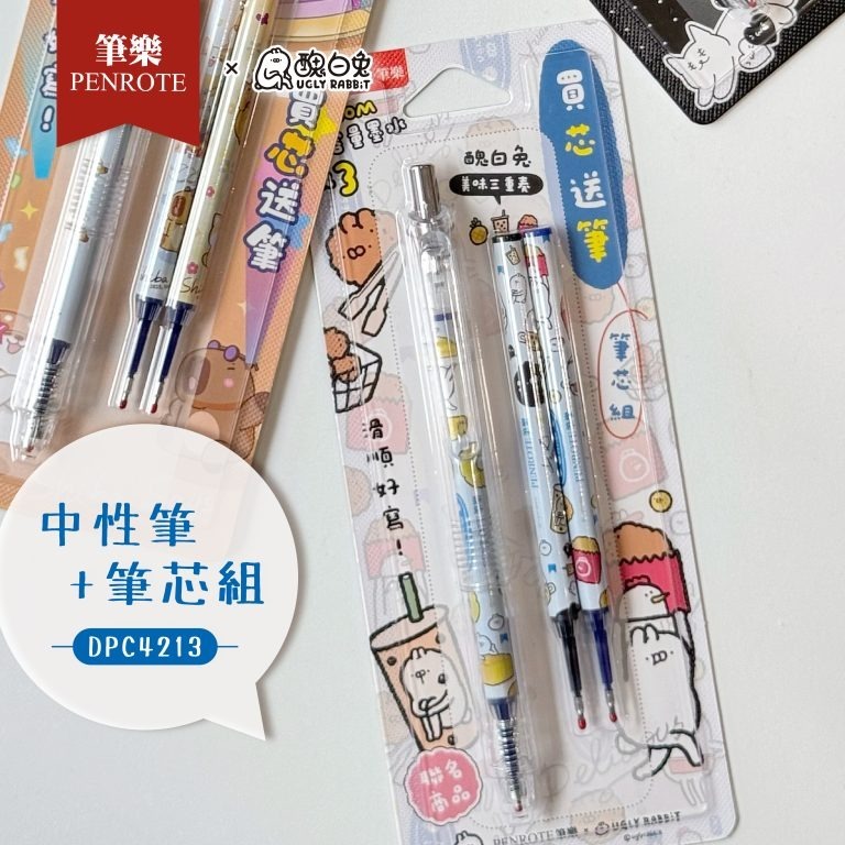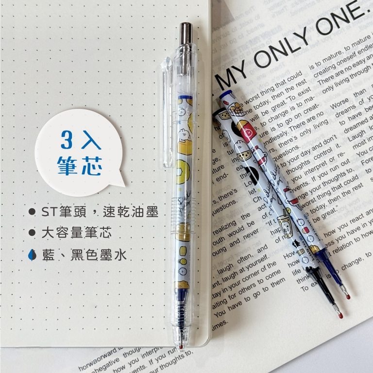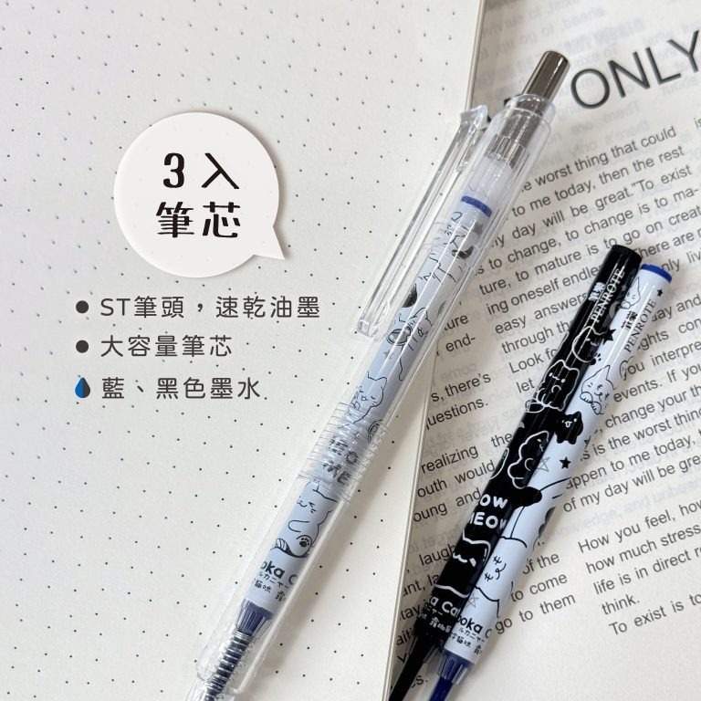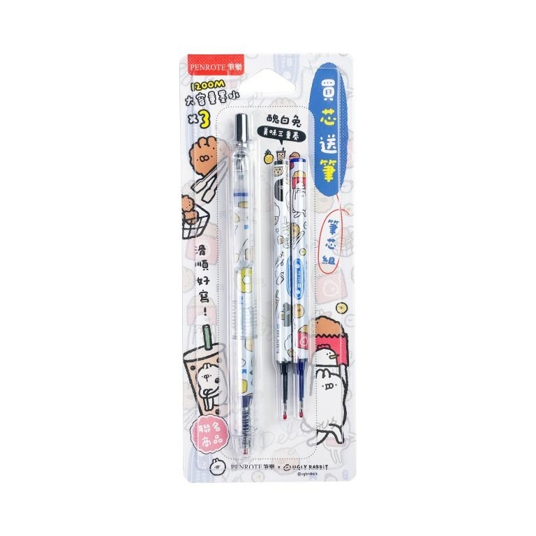 ✅一次擁有三款人氣IP不同圖案的筆芯 , 柴語錄/露咖貓/醜白兔