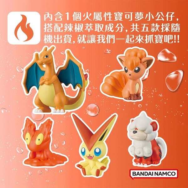 搭配辣椒萃取成分,暖暖溫浴,共五款火屬性寶可夢,就讓我們一起來抓寶吧!!