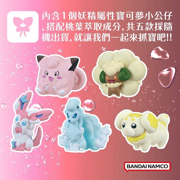 搭配桃葉萃取成分,共五款妖精屬性寶可夢,就讓我們一起來抓寶吧!!