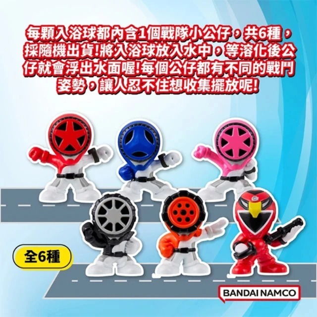 每顆入浴球都內含1個戰隊小公仔,共6種,採隨機出貨,
