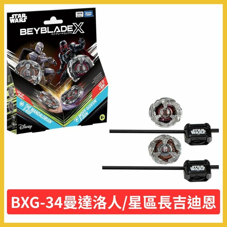 | 『BX-34曼達洛人 / 星區長吉迪恩雙重組合』商品內容: ※全新曼達洛人聯名商品 ※內含兩顆陀螺,皆為全新設計 ※內附兩個發射器,皆有STARWARS的特殊logo |