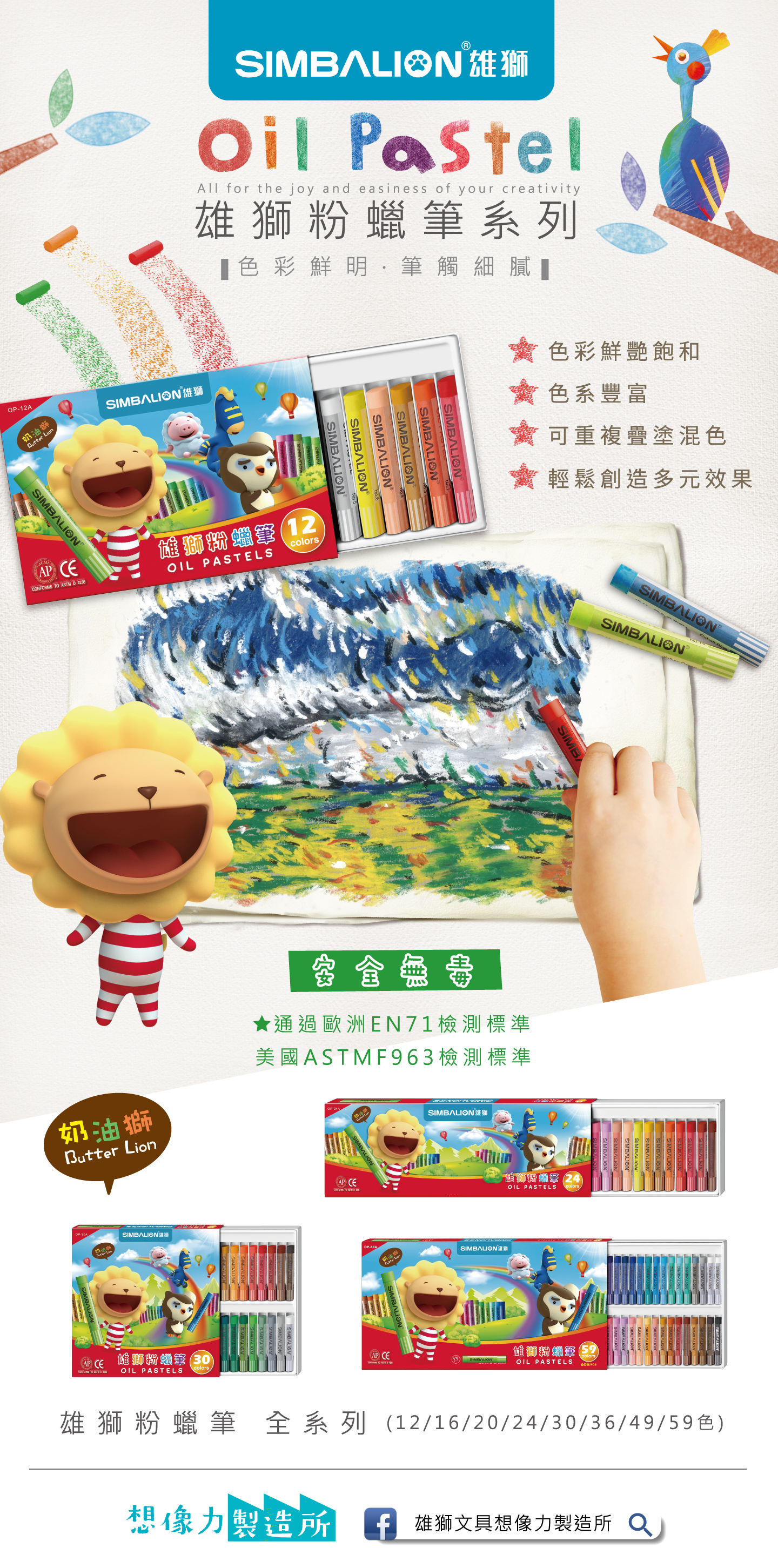 雄獅粉蠟筆12色-1111401A