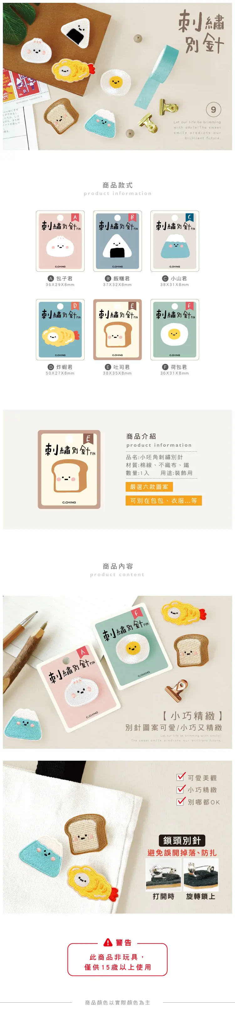 【商品說明】 1. 青青 小呸角系列 CAE-233 小呸角刺繡別針(每款尺寸不同請參照商品介紹) 2. 可愛小巧又美觀