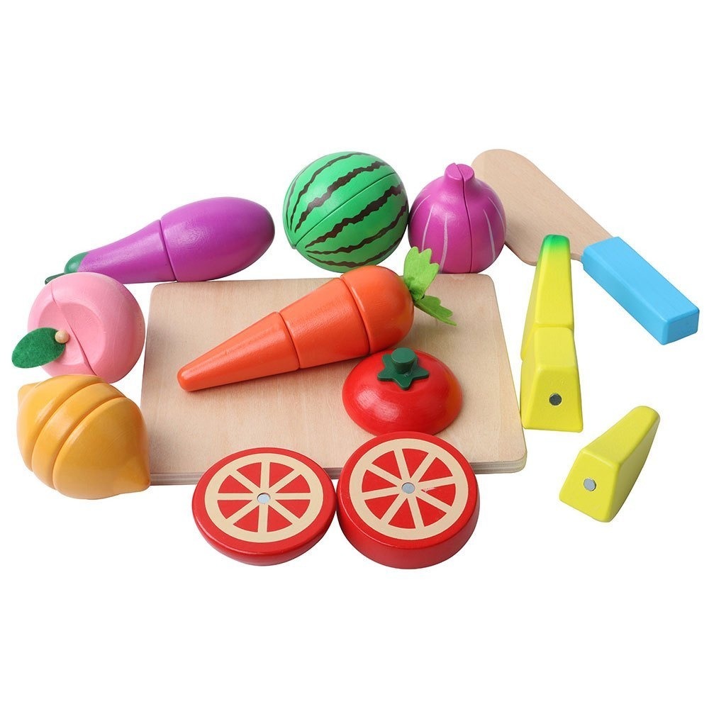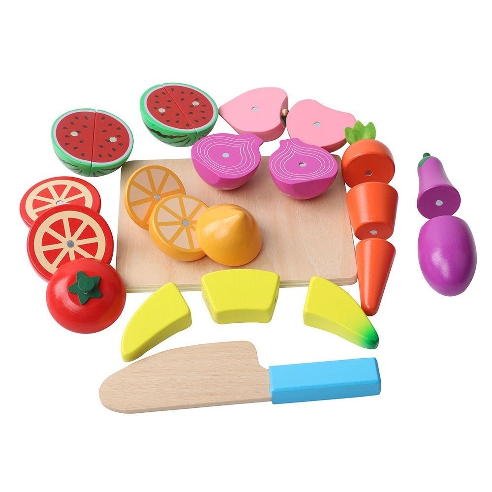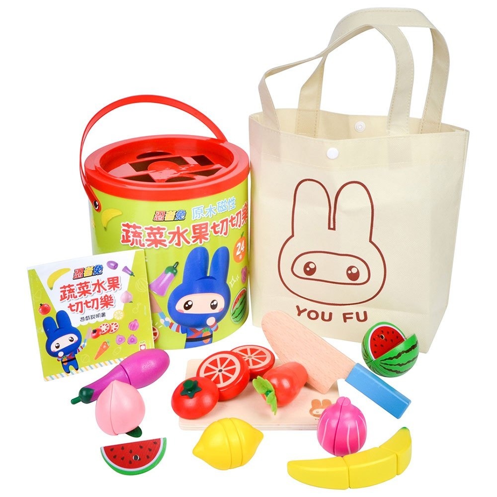 ■ 24件原木磁性切切組-含8種蔬果、一片砧板、一枝木刀)+收納袋+遊戲說明書